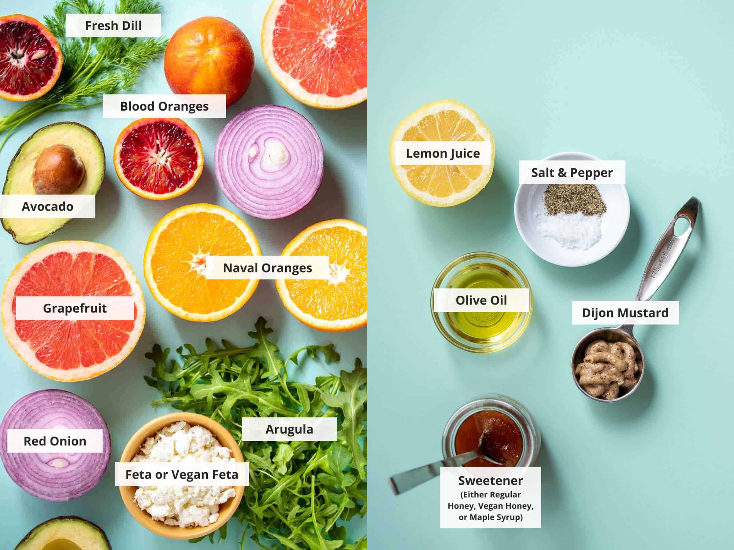 Combining fruits and veggies? Yes, please! Here’s what you’ll need for this delicious citrus salad recipe: