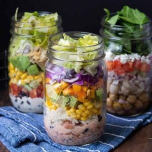 These mason jar salads are the perfect way to eat healthy when you are busy. Delicious, easy and great for warm weather!