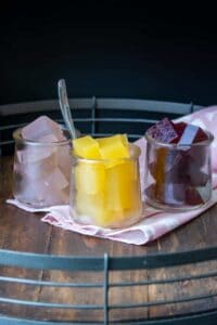 - You can do half water if you prefer, this method is used online a lot but it does end up with a less vibrant color and flavor. I experimented a lot with this and I did not prefer the water/juice combo. Our preference was all juice with 4 teaspoons agar for a firmer result.