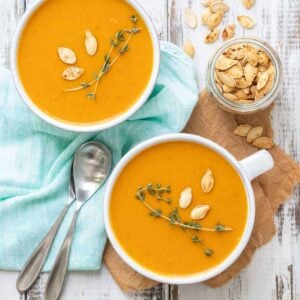 I love to make this healthy butternut squash soup for the whole family because it pairs well with so many things.