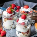 Build the trifle, you can use one big container to build it in or make 4 individual jars. You can also make 8 smaller jars for a lighter treat.