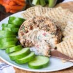 The cheese ball will soften the longer it is out of the fridge, but once coated in breadcrumbs still retains its shape well.
