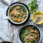 I love a good hearty one pot soup on a chilly evening, and this easy Vegan Italian Wedding Soup is full of comforting flavors with tender vegan meatballs simmered in a rich vegetable broth with orzo pasta. You do not need a wedding to enjoy this classic family favorite soup.