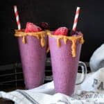 I love making this Vegan PB&J Smoothie with frozen berries, banana, and creamy peanut butter. It tastes just like my kids’ favorite sandwich, only blended up into a cold slurpable treat. It takes just minutes in the blender and is always a favorite in my house.
